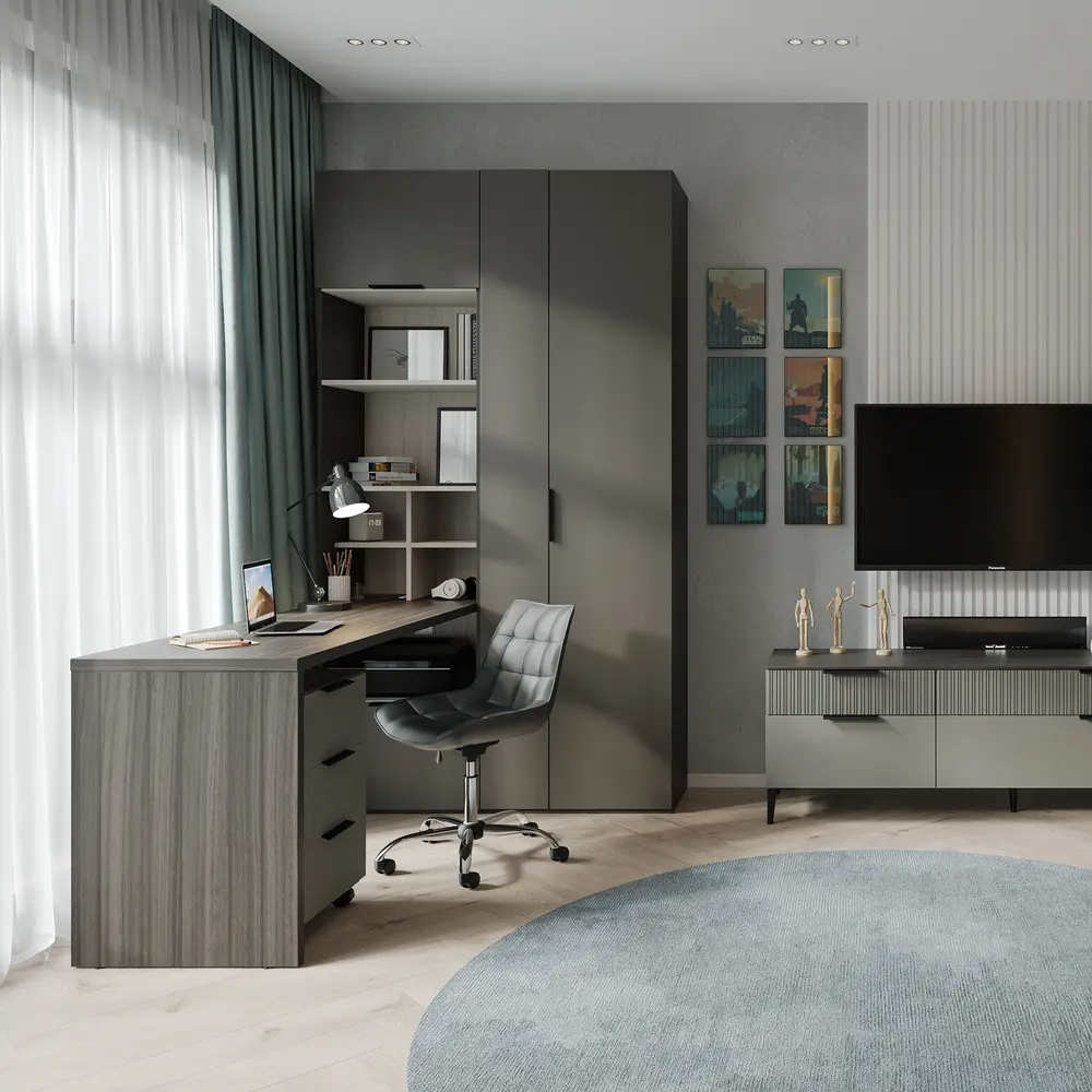 Современная модульная коллекция с лаконичным дизайном и мягкой цветовой палитрой. Практичные решения, удобная компоновка и универсальный стиль позволяют создавать комфортные интерьеры для всей семьи по разумной цене.